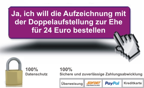 Eine weitere Aufstellung zur Partnerschaft / Ehe, die mehr an eine Paarberatung erinnert und noch mal zeigt, wie man auch eine Art Doppelaufstellung machen kann, kannst Du Dir auch noch ansehen.