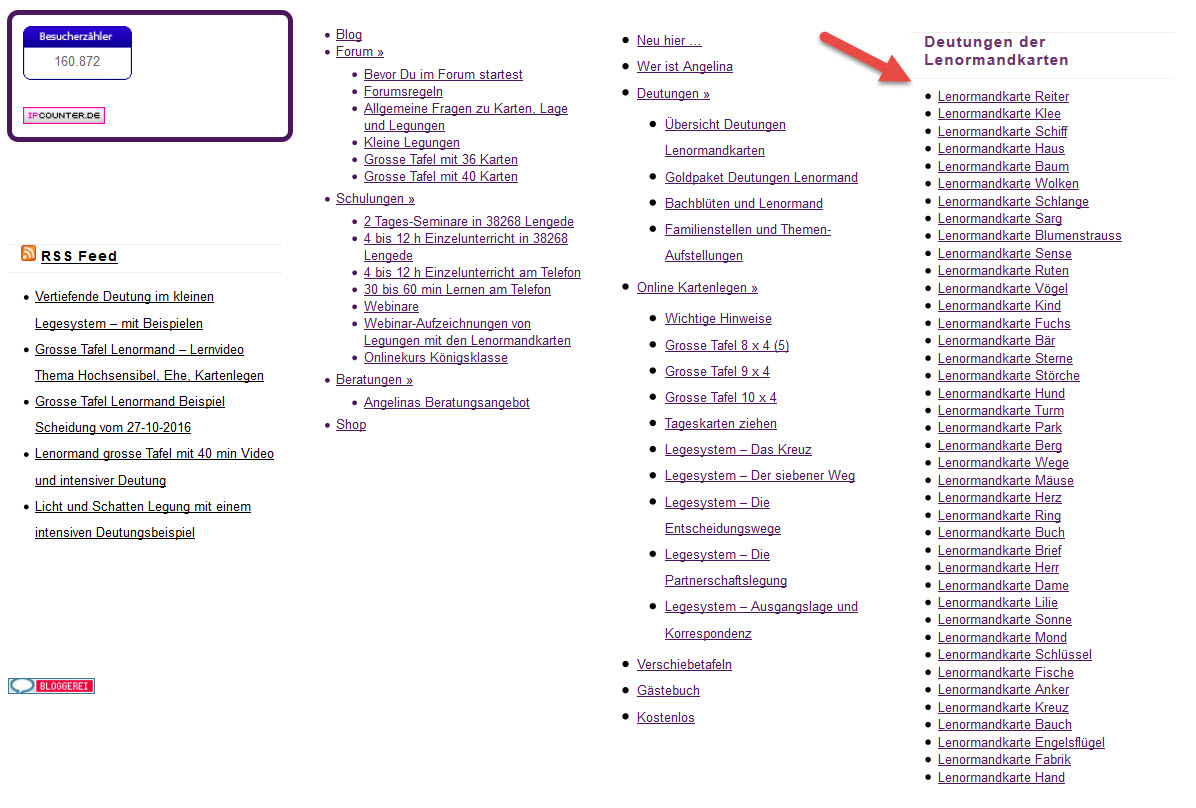 Auf jeder Seite in diesem Blog kannst Du bis ganz nach unten scrollen. Dort ist dann im Fußbereich eine Linkliste, wo Du schnell zu jeder Kartendeutung kommst.