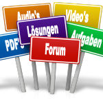 - Arbeitsblätter, Übungen also Aufgaben und auch Lösungsblätter